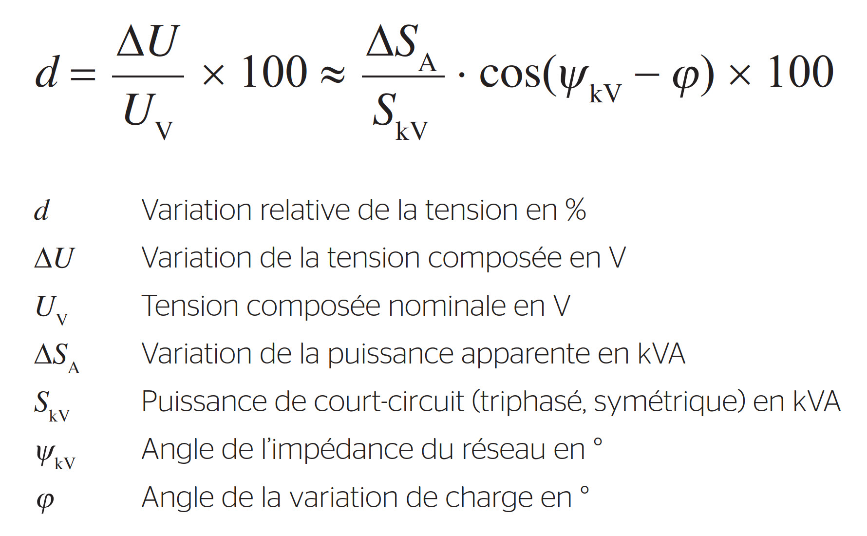 Afin de ne surveiller, pour des raisons de coûts, que les nœuds de réseau les plus critiques avec des appareils de mesure PQ, il est nécessaire de détecter ce que l’on appelle les hotspots PQ. Une approche simple permettant d’identifier les hotspots PQ potentiels a été élaborée dans le cadre du projet [3]. Elle consiste à calculer la variation relative de la tension d pour des charges symétriques aux nœuds du réseau selon la formule ci-dessous. Il faut tenir compte du fait que le point de raccordement au réseau, soit l’endroit où le client est physiquement relié au réseau de distribution, est déterminant pour l’évaluation des hotspots PQ.