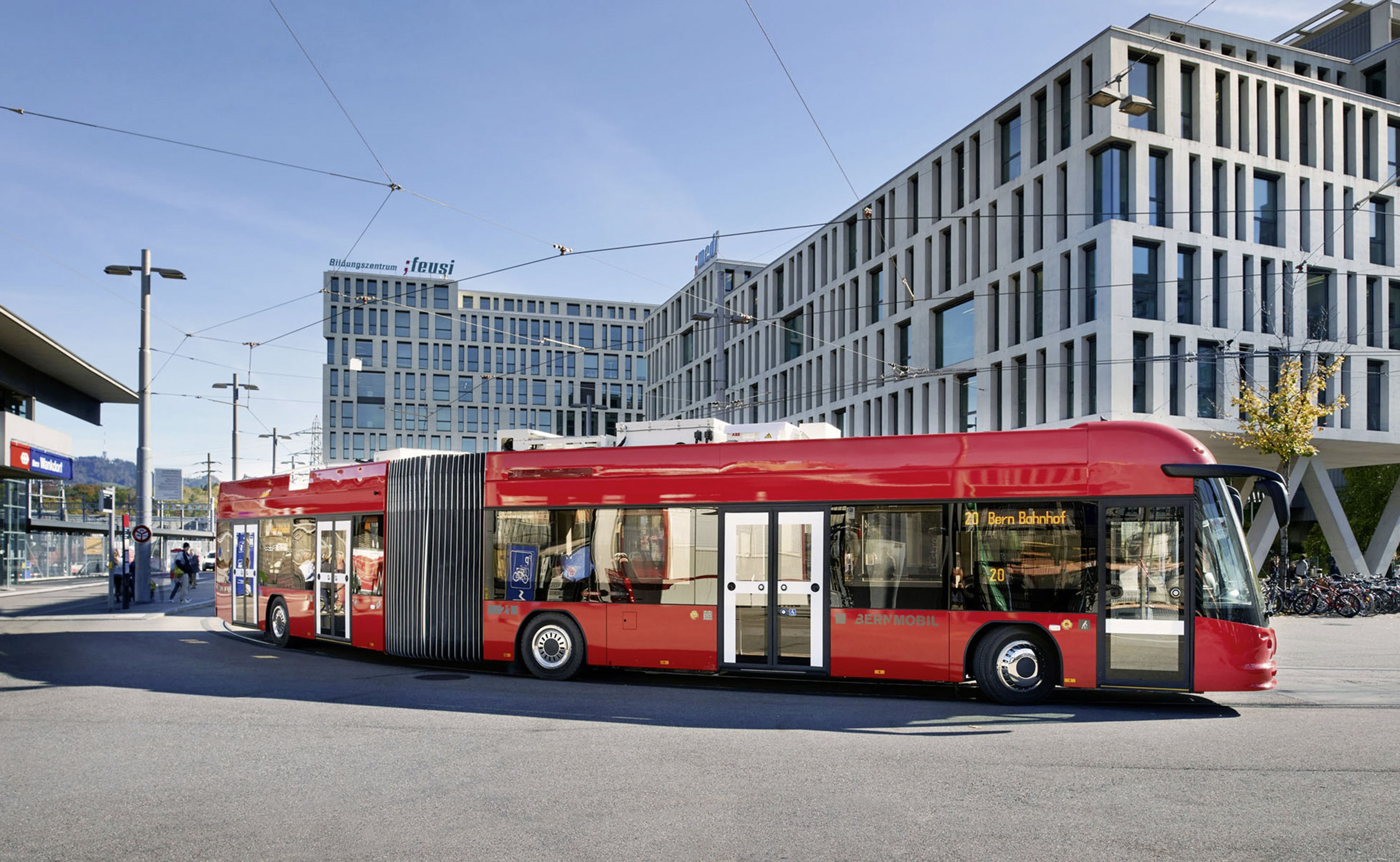 Quel est le lien entre l’électromobilité dans les transports publics et la qualité de vie dans les quartiers? L’optimisation des itinéraires répond également à cette question: en remplaçant les bus diesel par des bus électriques, les émissions sont réduites dans les quartiers et les liaisons en transport public, donc la qualité de vie de l’ensemble de la population, sont améliorées. Le remplacement des anciens trolleybus permet une planification plus souple des itinéraires et les quartiers sont mieux desservis. La question des détours et des déviations, lot quotidien des entreprises de transports publics, ne doit pas être sous-estimée. Les chantiers, les événements sportifs, les accidents de la circulation ou les manifestations exigent des parcours de ligne flexibles pratiquement au quotidien. Les entreprises de transports publics disposent encore pour cela de «vieux» autobus diesel, mais ceux-ci arrivent lentement en fin de vie. En l’occurrence, les nouveaux bus à batterie offrent la flexibilité requise.