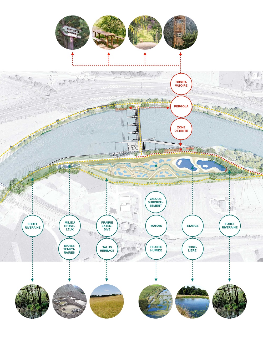 Dans le développement du projet, il est également essentiel d’identifier et de tenter de préserver les écosystèmes existants. En particulier dans la plaine du Rhône, il est extrêmement complexe de trouver des surfaces pour créer de nouveaux biotopes. Pour répondre à ce défi de gestion du territoire, la préservation de l’existant est dès lors indispensable.