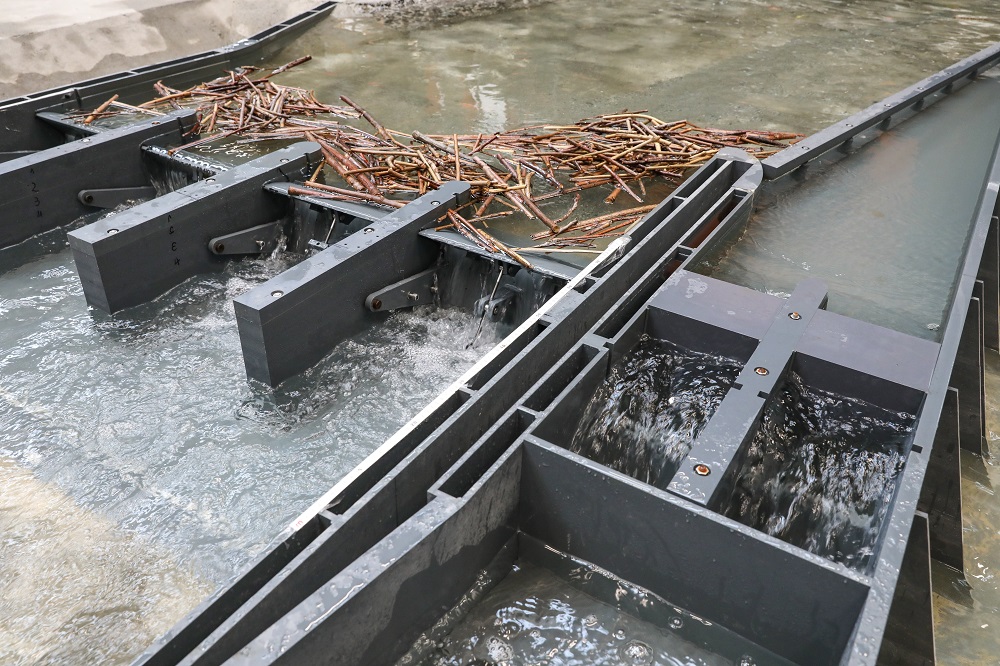 La migration piscicole est assurée par une passe technique à fentes verticales pour la montaison et par un canal de dévalaison faisant également office de purge pour le transport flottant. Une attention particulière a été portée au design et au dimensionnement des ouvrages de migration afin de garantir leur efficacité tout au long de l’année et dans les différentes configurations de débit du Rhône. Une grille de type Curved Bar Rack (CBR) agit comme une barrière devant la prise d’eau pour les différentes espèces piscicoles identifiées. La mise en place d’un tel dispositif de protection sur un cours d’eau de l’envergure du Rhône étant un véritable défi, une collaboration a été initiée avec l’institut de recherche VAW de l’école polytechnique de Zurich pour optimiser, à l’aide de modélisations numériques et physiques, les caractéristiques de la grille CBR. Cette manière de procéder garantit au maître d’ouvrage de pouvoir bénéficier des dernières avancées de la recherche afin de les intégrer dans son projet d’exécution.