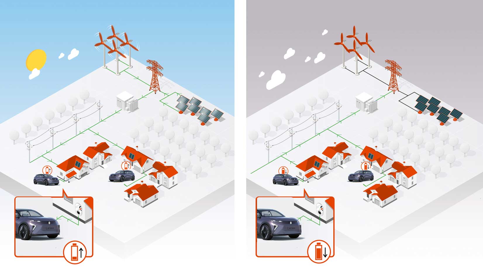 Avec le V2G, des cycles supplémentaires de charge et de décharge s’ajoutent aux phases normales de recharge de la batterie. Pour les modèles compatibles avec le V2G, ces cycles supplémentaires sont déjà pris en compte dans les modèles de vieillissement que Renault utilise pour vérifier la durabilité de la batterie. L’effet est minime, car les cycles de charge et de décharge provoqués par le V2G sont entièrement contrôlés: la plage SoC (State of Charge) autorisée pour le V2G et la vitesse de charge et de décharge (limitation de puissance) ont été définies de sorte à minimiser l’impact sur la batterie et à préserver sa santé. Pour preuve, le constructeur garantit les batteries qui utilisent le service V2G au même niveau que les batteries sans service V2G.