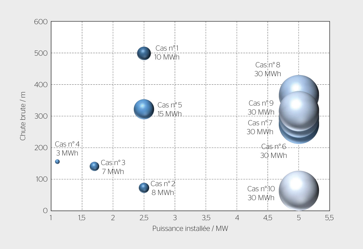 <strong>Figure 2</strong> Graphique Puissance – Hauteur de chute – Énergie.