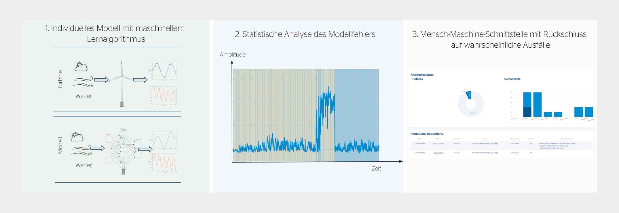 Mit maschinellem Lernen können von Energiesystemen erzeugte Signale erfasst, segmentiert und klassifiziert werden, um Ausfallrisiken zu erkennen. Basierend auf dieser Technik wurde ein Tool entwickelt und implementiert, um eine vorausschauende Wartung (Predictive Maintenance) einer grossen Anzahl von Windanlagen zu optimieren.